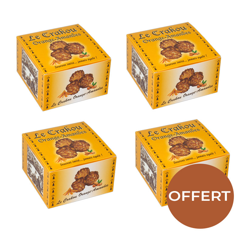Pour tout achat de trois boîtes de Crakou Orange Amande, repartez avec une quatrième gratuitement.